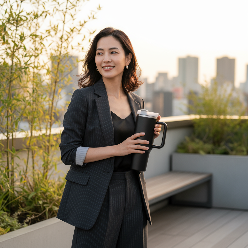 忙しい仕事の日に最適!一日中お茶が冷たく保たれ、サイズも十分なので足りなくならない。